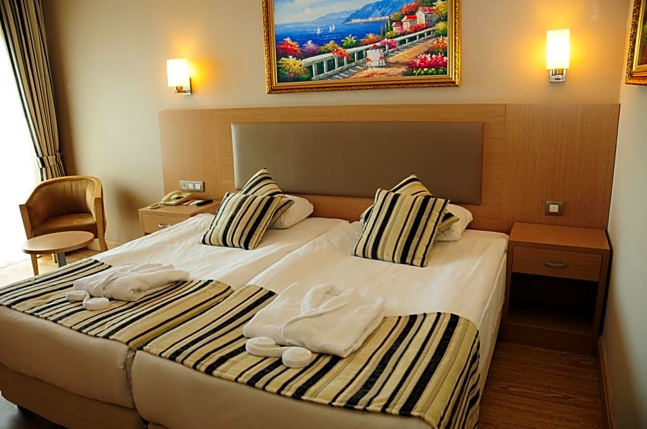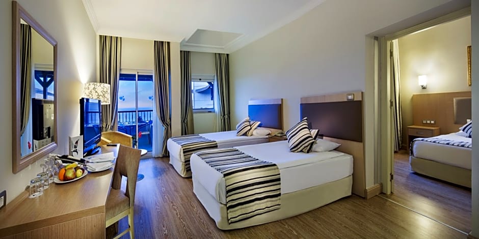 Tra i piaceri in loco ci sono un parco acquatico (gratuito), una spiaggia privata (gratuita) e piscine coperte e all'aperto (gratuite). Parcheggio privato gratuito e Wifi gratuito rendono le mattine semplici, mentre il servizio in camera e la reception aperta 24 ore su 24 si occupano del resto. Tocchi adatti alle famiglie includono un mini club per bambini (gratuito), un parco giochi, pasti per bambini (gratuiti) e minigolf (gratuito), oltre a un bagno turco/sauna di vapore (gratuito) e una sauna (gratuita) per un meritato relax, il tutto con vista sul giardino o sul balcone.
